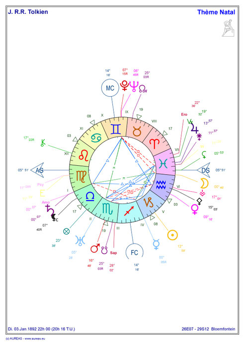 J.R.R. Tolkien est né le 3 janvier 1892 à Bloemfontein en Afrique du Sud à 22h.