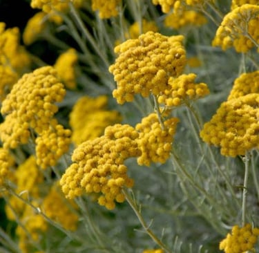 L’Hélichryse italienne est une fleur poussant dans certains endroits du bassin méditerranéen : Corse, Croatie, Sardaigne….